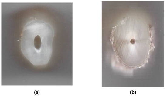 Partial cracks within radicular dentine were observed in roots using all instruments. No cracks were observed in the control group. Chi-squared analysis showed that the difference between PTN and the control group and the difference between TF and the control group was significant (p = 0.0350), whereas the difference between WOG and the control group was insignificant (p = 0.0717). The difference between PTN and WOG was also not significant (p = 0.6773). The number of cracked specimens was the same for PTN and TF (p = 1). Examples of cracked specimens are shown in Figure 1, and non-cracked specimens are shown in Figure 2.
