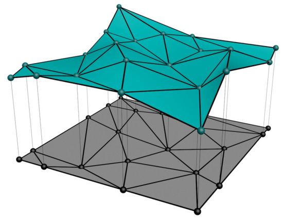 Figure 10. Schematic diagram of a triangulated irregular network (TIN) and its planar projection.