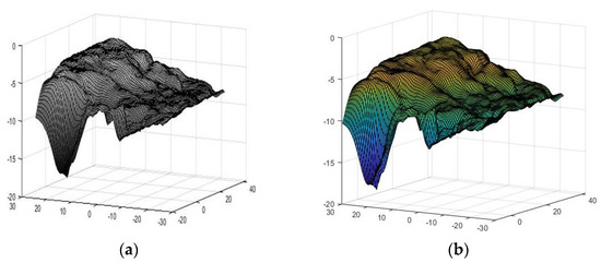 Figure 12. Comparison of the fracture surfaces before and after the triangulated point cloud (mm): (a) without triangulated point cloud and (b) triangulated point cloud.
