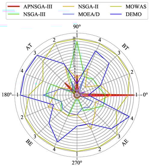 | APNSGA-III | 361.2 * | 368.1 | 10,275.5 * | 10,300.2 * | 536.9 * | 537.7 * | 20,202.1 * | 20,236.3 * | 7 * |