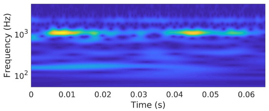 The time-frequency image representation is based on the continuous wavelet transform (CWT). The CWT uses the same length of time data as in the previous transformation. A mother wavelet is a function with zero average (i.e., ), normalized (i.e., ), and centered in the neighborhood of [33]. Scaling by a positive quantity , and translating it by , a wavelet family can be defined as: