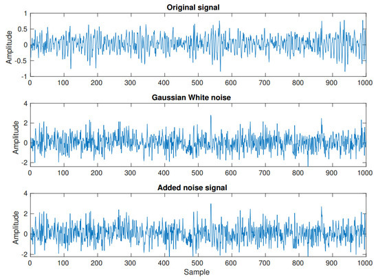 The bearing data set supplied by CWRU has been extensively employed as a benchmark for evaluating bearing fault diagnosis methods. Recently, proposed fault diagnosis methods with advantage signal processing and feature learning techniques can achieve very high accuracy. It is not easy to highlight the performance of newly proposed fault diagnosis methods; therefore, noise signals are often added to the original signals to evaluate methods. This way can help to evaluate the robustness of fault diagnosis methods under more challenging conditions. In this scenario of evaluating diagnosis methods, Gaussian white noise (AGWN) is added into the original vibration signals as in Figure 11.