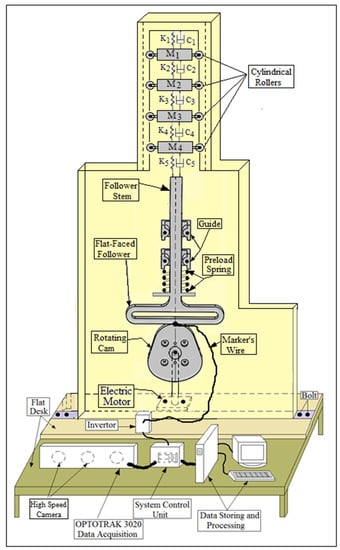 - Abu-Mahfouz, I. Experimental investigation of non-linear behavior of a cam-follower mechanism. In SEM Annual Conference and Exposition on Experimental and Applied Mechanics; Elsevier: Springfield, MA, USA, 2005. [Google Scholar]