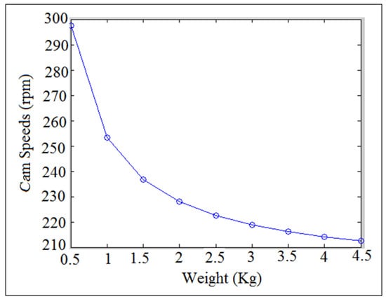 Cam speed against weight.