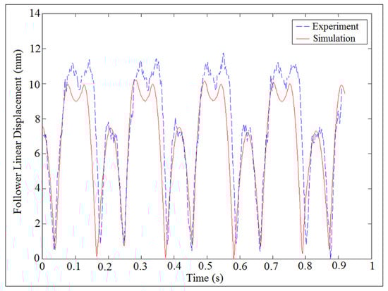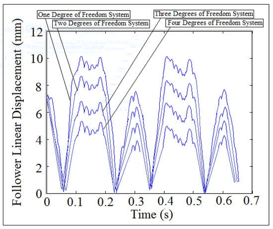 Follower linear displacement against time using multi-degrees of freedom systems.