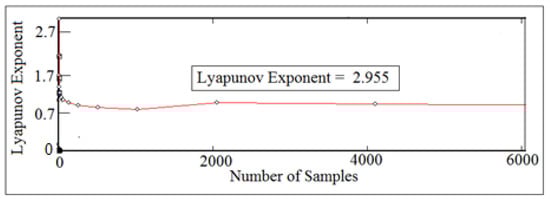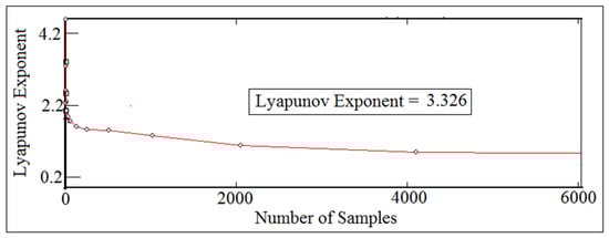 Local Lyapunov exponent against number of samples for (I.D. = 16 mm) and (N = 400 rpm).