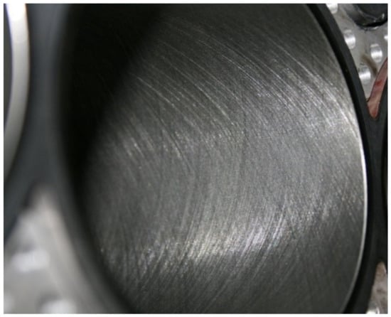 It is noteworthy that an ordered microrelief microstructure formed on the inner cylindrical surface of the cylinder liner contributes to its ability to retain an oil film [,]. As a result, the surface performance is improved, and the cylinder life is extended. This is confirmed by the findings presented in [,]. Regular microreliefs with different geometric parameters can control the conditions of friction and lubrication of conjugate friction surfaces, and prevent unacceptable conditions in which the surface will be damaged.