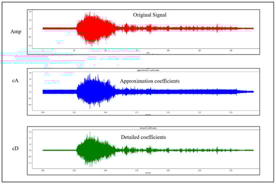 To overcome this problem, WT has been developed for non-stationary signals. WT uses a short window at high frequency and a long window at low frequency. Thus, wavelet transformation measures the similarity between the signal being analyzed and the base wavelet. WT uses the variation in the scales and shift in extracting the hidden features, by detail and approximation coefficient. The original signal, along with detail and approximation coefficients (db4 wavelet) applied to the vibrational signal obtained from UPM, are shown in see Figure 8. The adaptive capabilities of the WT provide powerful mathematical tools for the analysis of non-stationary signals. The multiresolution and adaptive capacities of WT are an enabling tool for advancing the science base of signal processing in manufacturing [69].