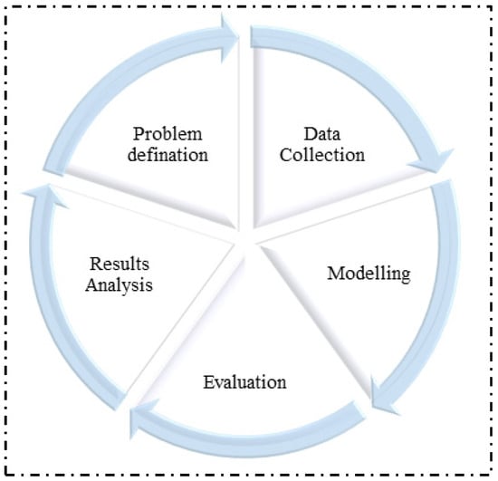 There are different methods with the emergence of a new generation in machine learning paradigms [75]. These methods include Bayesian network, support vector machine (SVM), artificial neural networks (ANN) [76], decision trees (DT) [77], random forest (RF) [78], naïve bayes, K-nearest neighbors (K-NN) [71], and logistic regression [79]. All of these algorithms are readily available and their implementation is discussed in further sections. The basic problem-solving process utilizing machine learning with various steps is shown in Figure 9.