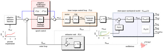 A full scheme is reported in Figure 8. The load speed Ωload is controlled by closing the feedback loop on the motor speed that came out from an estimator E(s), seen as an intermediate stage between Ωmot and , Gload(s) is described through Gmot and G41 = Ωload/mmot, as given in (8).
