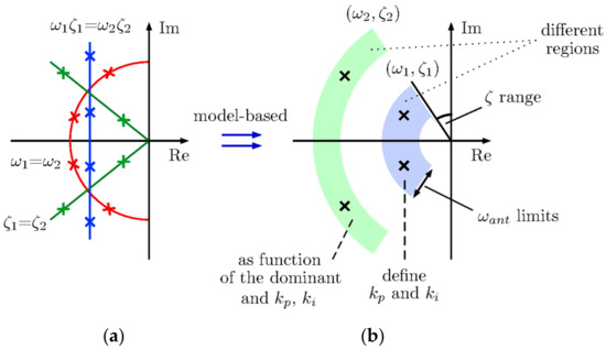 Pole placement assignment cases. (a) Poles position; (b) pole placement design regions.