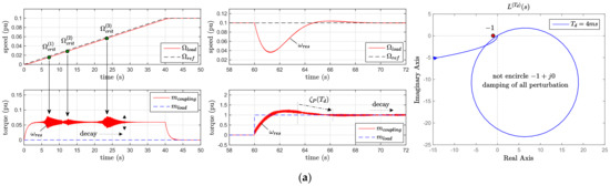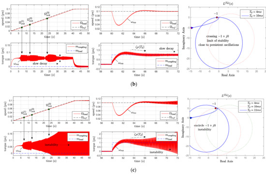 System response (torque and speed) and stability analysis with different Td: (a) Td = 4 ms; (b) Td = 10 ms; (c) Td = 11 ms.