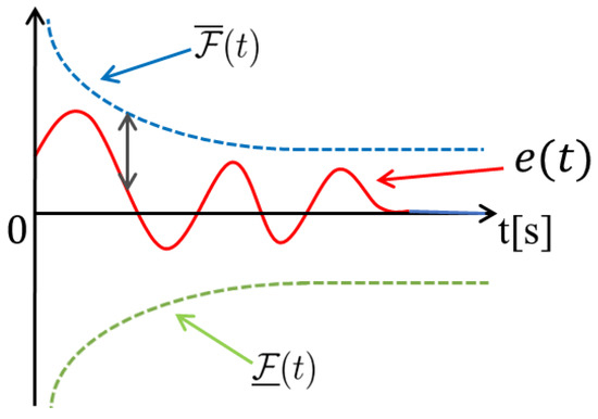 where is the scaling function. The smaller the distance between the error and the boundary function, the larger the adaptive gain. In contrast, the larger the distance, the smaller the gain. Additionally, the error at time must be inside the boundary function. Therefore, the boundary function must satisfy the following.