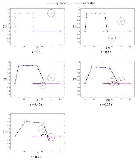 - Regarding collision avoidance control, an additional term depending on the velocity of an obstacle is introduced, previewing its next position in order to plan the optimal correction of the trajectory.
