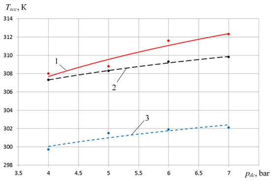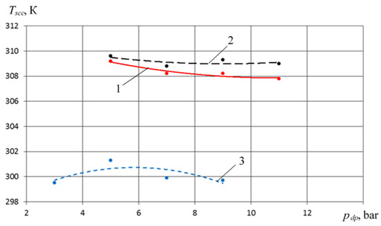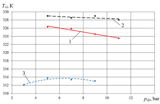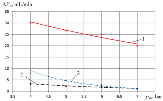 When gas is completely displaced from the working chamber of the compressor section, liquid is displaced from the working chamber, and the compressor section works in the pumping mode. Liquid from the working chamber of the compressor section enters the suction line through leaks in the suction valve dM4w, through the discharge valve to the discharge line of the compressor section dM5w, through leaks of the piston seal and into the working chamber of the pump section dM17. For calculations, we assume that the liquid temperature in the working chamber of the compressor section remains constant (Tw = const).