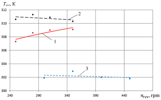 The distribution of the temperature field over the surface of the cylinder liner and the surface of the valve plate cover is complex and not stationary over time. The performed studies prove that temperature fluctuations of the cylinder bore and surface of the valve plate are less than 1 K for single-acting compressors, so we assume that the temperature distribution field is stationary. In most cases, the temperature distribution fields are determined experimentally [14].