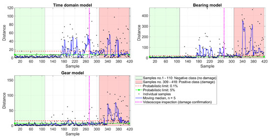 The defined covariance matrices for the time domain model (Σ1), bearing model (Σ2) and gear model (Σ3) of thruster 2 were as follows: