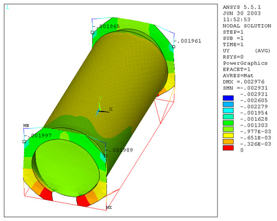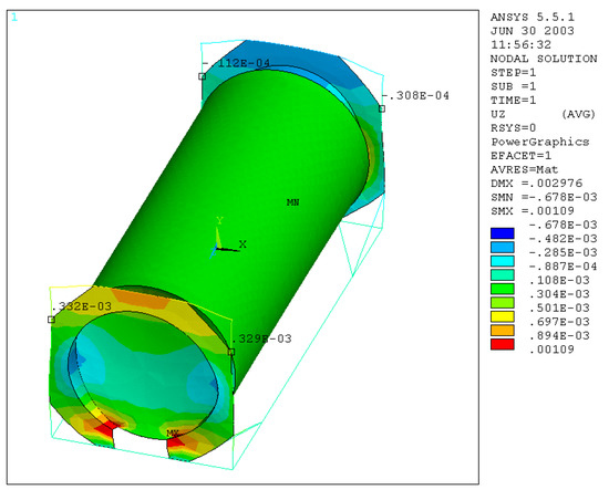 It is possible to note that, for the stacking test, the percentage maximum error is 57% for Uz, while for Ux and Uy, the percentages are 12% and 7%, respectively.
