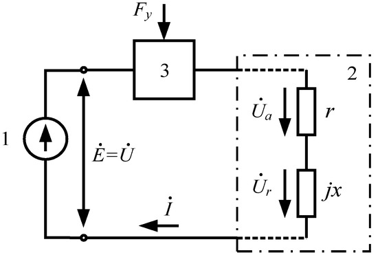 The circuit for EM connection to the power mains can be represented in the form of an unbranched circuit of sinusoidal current (Figure 3).