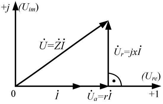 From the analysis of Equation (4) and Figure 3, it follows that, when the current vector is combined with the real coordinate axis of the complex plane, the mains voltage vector can be conditionally split with respect to the current phase into the in-phase (real) and quadrature (imaginary) components: