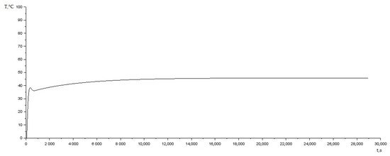 Figure 7. Transient characteristics of the model of the automatic control system of the temperature of the heat carrier without an acoustic–magnetic device.