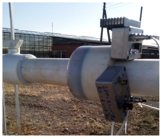 Figure 12. Acoustic–magnetic device installed on a pipe of heating main.