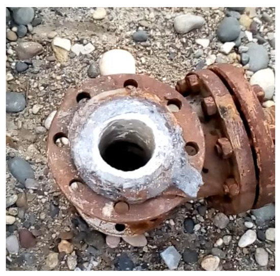 Figure 15. A heat supply system equipment (a valve) if geothermal water is treated with an acoustic–magnetic device.