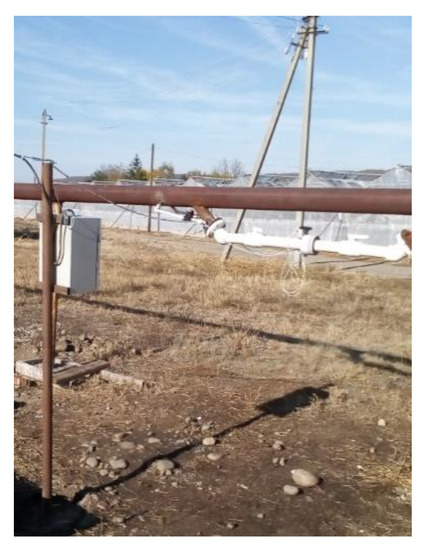 JSC “Raduga” (Republic Adygea) uses greenhouses of older generations, which currently do not have a comprehensive climate control system, and all parameters are maintained in manual mode. The heat supply system of these greenhouses is based on a geothermal heat source; therefore, there is an intensive formation of scale on the internal surfaces of this system. The executive devices (elements) of the automation system cannot operate mechanically due to the resulting scale. Their failure makes it impossible to use an automation system to provide the necessary temperature conditions. The problem of scale formation can be solved by using acoustic–magnetic devices that prevent the formation of solid deposits on the executive devices [21,22].