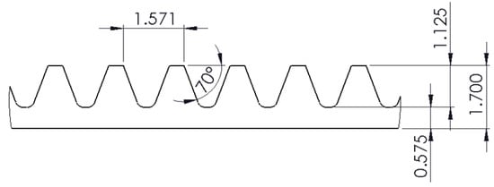 The desirable dimensions of the saw tooth profile (m = 0.5). All dimensions are in millimeters (mm).