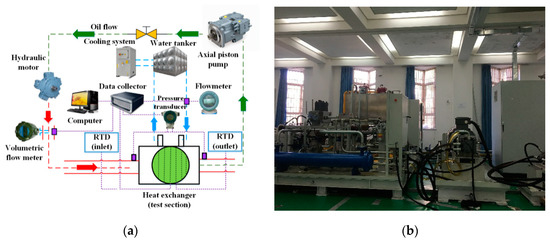 Test rig established at Wenzhou University. (a) Schematic of the experimental system. (b) Photographs of the test rig.