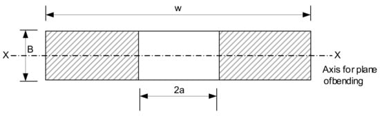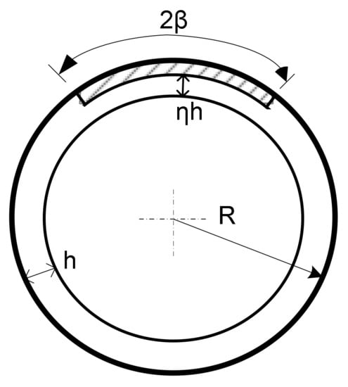 where P is the exerted load and l is the distance between two supports. The notch geometry (in Figure 4) is of an external circumferential defect on a cylindrical pipe under quasi-static loading of bending for which the collapse moment, for is given by []: