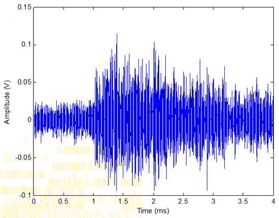 Raw acoustic emission (AE) signal at deflection of 3.22 mm.