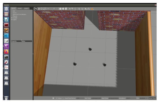 We transplanted the control algorithm written in Python code on the visual simulation platform to the ROS system of the mobile robot, and firstly tested in the ROS simulation as shown in Figure 13.