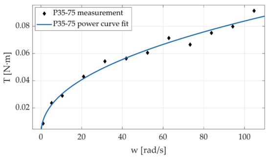 The 35–75 G and 25–75 G configurations differ in the motor shaft diameter, and the other parameters remain the same. The results show that there is a slight difference in the friction values for speeds over 30 rad/s; for lower speeds, there is no significant difference. This behavior may be due to the small difference in motor shaft size between configurations, which in turn induces a small difference in static load on the bearings. The 25–104 P and 25–104 X configurations have similar physical parameters, the difference being the way the cable was wrapped around the motor shaft and pulley in each configuration. Both configurations show higher friction torque values than configurations 25–75 G and 35–75 G, but there were no significant differences between them. These preliminary results suggest that friction is governed mainly by friction in the bearings, which is directly related to the load, in this case, the weight of the pulley and the motor shaft. The type of winding does not significantly affect the friction behavior in the cable.