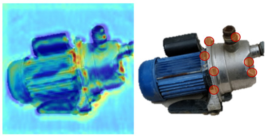 A representative example of the obtained results is depicted in Figure 4. The network can automatically produce the heat-map of the products’ most profound tracking points through the feature maps of the Attention-Augmented Inverted Residual Block. The presented outcome is obtained using the network provided in [25], which was originally trained on the PANOPTIC [38] dataset. More specifically, 165,000 learning subjects were used under the Stochastic Gradient Descent optimizer with a triangular policy of Cyclical Learning Rate [39]. The proposed DL architecture identifies regions of increased saliency on a novel object outside the training space, highlighting its versatility and generalization properties. With the view to further evaluate our proposed framework’s performance, we conducted an additional round of experiments to measure the network’s robustness for detecting salient points through repeatability. To that end, we applied a series of transformations (including rotation, translation, and affine) on the item depicted in Figure 4, resulting in 300 different instances. Then, we deployed the Attention model on each of them and measured the detected points’ repeatability using the Intersection over Union (IoU) metric. The obtained results are presented in Table 1 and indicate that most points can be effectively re-detected over multiple viewing angles. Please note that the network was set to detect the most prominent points from each image.