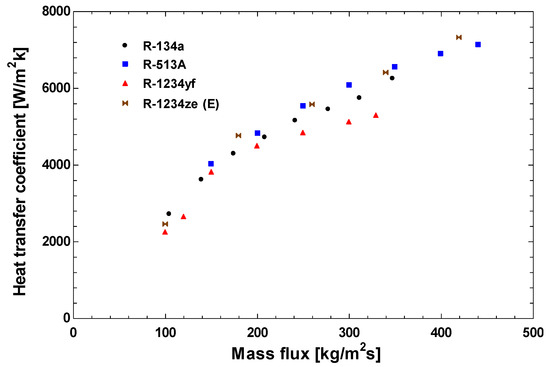 - As the mass flux increased, the heat transfer coefficients of R-513A and R-1234ze(E) became up to 10% higher than those of R-134a.