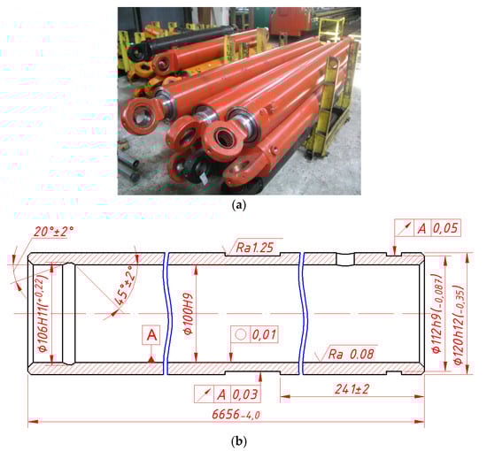 - Kryvyi, P.D.; Dzyura, V.O.; Tymoshenko, N.M.; Krypa, V.V. Technological heredity and accuracy of the cross-section shapes of the hydro-cylinder cylindrical surfaces. In Proceedings of the International Conference on Materials and Processing and the 42nd North American Manufacturing Research Conference, Detroit, MI, USA, 9–13 June 2014; p. 2, Paper No. MSEC2014-3946. [Google Scholar] [CrossRef]