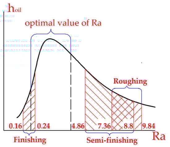 - Finishing occurred due to the tool and treated surface coming into contact by their roughness tops, the bearing area of which was small. The surface looked relatively smooth, covered with small unidirectional lines. This was due to significant pressures on the contact surface that exceeded the yield strength of the material and caused the intense plastic deformation of roughness, followed by its smoothing. In parallel, the contact area between the tool and the treated surface increased. Under such conditions, the surface layer of the metal was significantly strengthened, which increased the surface resistance to plastic deformation. Thus, the roughness value was stabilized.