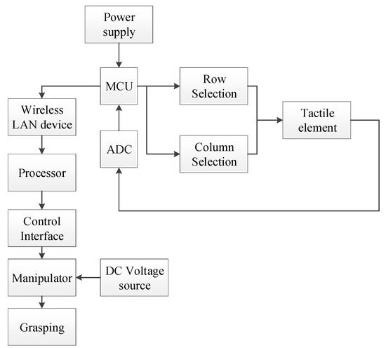 Block diagram of sensor array scanning circuit and grasping system.
