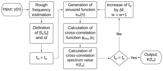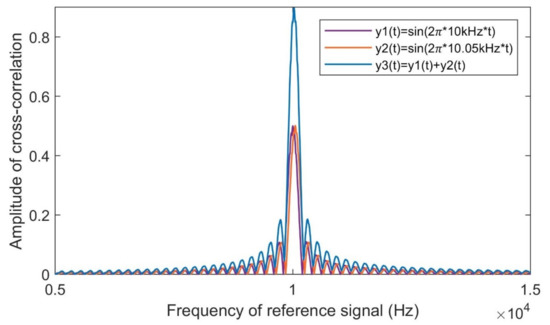Based on this property, and the fact from the Fourier analysis, that a signal can be approximated with a linear combination of trigonometric functions, one can assume that the frequencies of a test signal can be identified by determining values of the frequency fN, which result in the largest amplitude of the cross-correlation function . Thus, a new discrete signal processing method called the “cross-correlation spectrum” is described in this article.