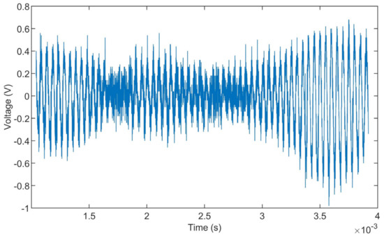 Figure 12 visualizes a typical SMI signal. This is a sinusoidal signal disturbed by amplitude and frequency modulation, as well as additive noises. All these factors make it difficult to precisely measure the rotational speed with self-mixing interferometry. Therefore, there is a need for robust signal processing methods.