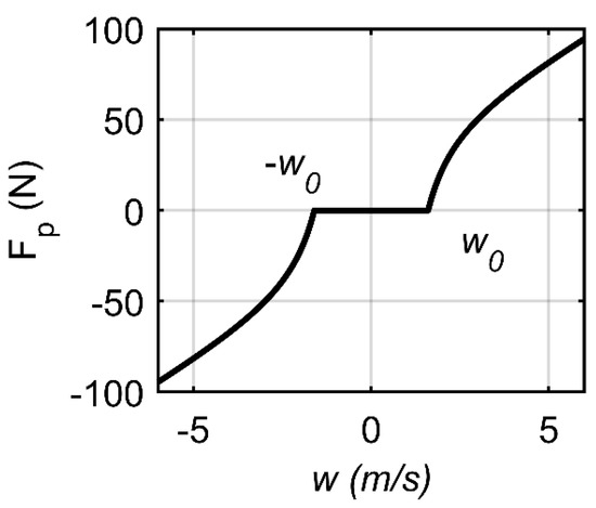 From Equations (10), (12) and (13), the planing force is realized as a non-linear noncontinuous force. The relation between the normalized planing force and vertical speed w is shown in Figure 2. It can be observed that this force only occurs if the magnitude of the vertical velocity w is greater than wo, where the vehicle aft end pierces the super-cavity and contacts with water as illustrated in Figure 1. The force can cause vibration, shocks, and has the tendency of pushing the vehicle aft end toward the center of the super-cavity. Depending on the strength of the tail-moment generated by the planing force, the vehicle may be suffered from the tail-slap condition, when repeating shocks occur due to the contacts between the vehicle tail and the cavity wall in opposite sides.