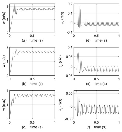 The open-loop systems are highly unstable. However, even a state-feedback controller provided as in [4], the closed-loop system of the delay-free model with the controller as in Equation (31) still experiences the periodic motion as in Figure 3a.