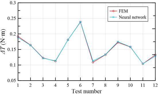 Based on the principle of selecting fewer tests, was selected as the appropriate orthogonal array, which means 12 sets of tests need to be conducted by using the Maxwell 3D. The test results of FEM simulation are shown in Figure 10. Therefore, 12 groups of tests were analyzed, and the analysis results are shown in Table 2.