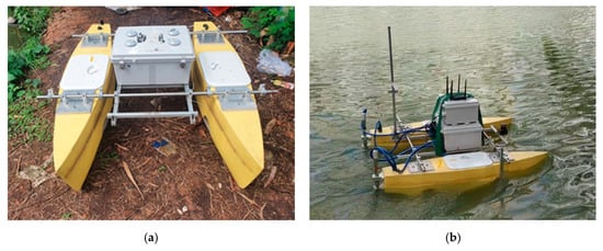 - Tran, N.-H.; Nguyen, T.-C.; Tran, V.-T.; Nguyen, V.-C.; Nguyen, T.-N. The Design of an VIAM-USVI000 Unmanned Surface Vehicle for Environmental Monitoring Applications. In Proceedings of the 2018 4th International Conference on Green Technology and Sustainable Development (GTSD), Ho Chi Minh City, Vietnam, 23–24 November 2018. [Google Scholar]