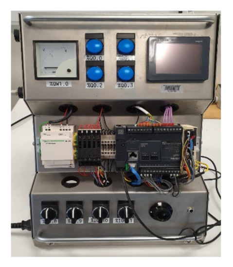 - Schneider-Electric. Modicon M221 Logic Controller User Guide; Schneider Electric: Neuss, Germany, 2020. [Google Scholar]