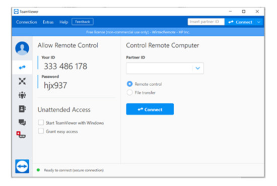 ISL Online and Web Server were not considered to be “low cost” for the development of the system. TeamViewer was selected for use because a functional free version is available that suits the requirements of the application. The main features of TeamViewer are: