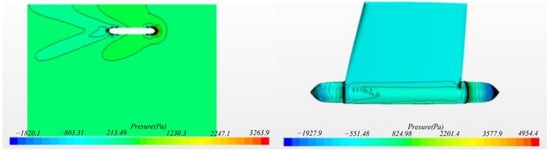 Figure 25, where, the total number of elements is 136524. Two maximum pressure zones are formed near the two stagnation points of the hull head and tail. On maximum pressure zones, wave-generating effect is the strongest, and the effect on the place near the middle position of the hull will be not obvious. Where velocity of the unmanned surface vehicle relative to water is 0.9 m/s, Froude’s number is 0.259.
