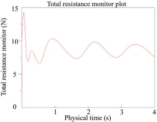 Figure 27, respectively. The simulation calculation shows that the total resistance of the ship is about 13.4492 N and the viscous pressure resistance is about 6.1870 N, which shows that the wave resistance accounts for about 46% of the total resistance in this ship.