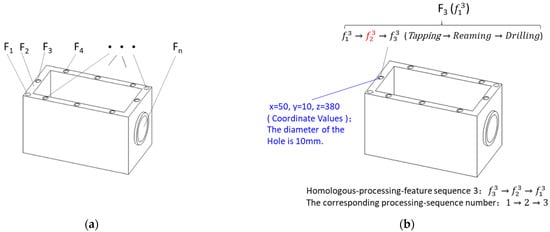As shown in Figure 5a, all final processing features of the part are directly obtained by analyzing the detailed drawing to form a processing feature set indicated by A, which is described in Equation (1):